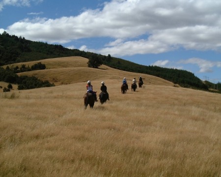 It is situated on the other side of the Gully from the Horse Trekking Base, and takes in superb views of the new Mt Lyford Lodge. We cross the gully along a track, which has a short but steep climb out of the gully, then ride down and up a ridge to a look out point, where we stop for photos before following a farm track around the hillside, and back across the Gully. The ride is situated on Snowden, and has picturesque views of the bush covered countryside. This ride is subject to dry conditions.